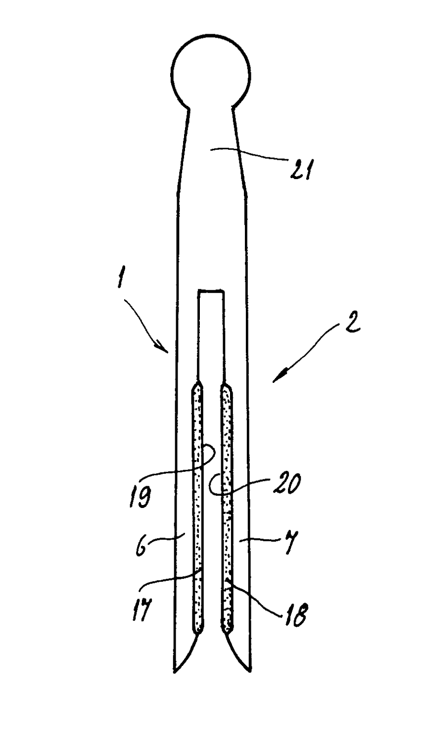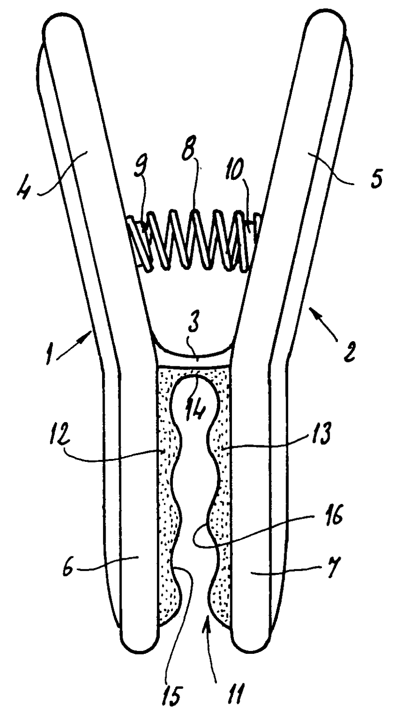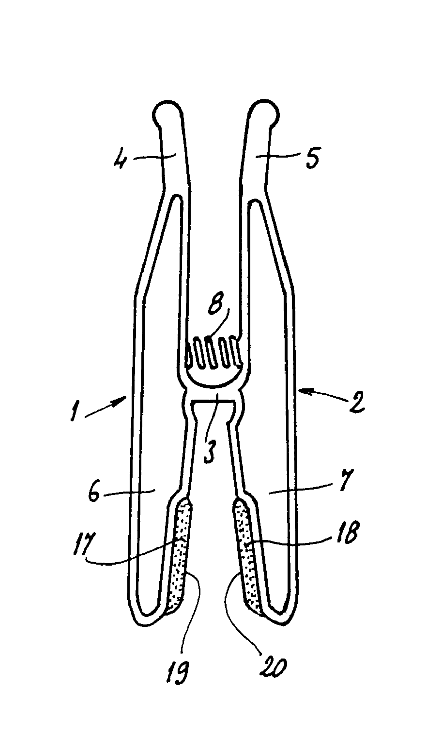 | the parts forming jaws of the two legs are made of a relatively hard material | |